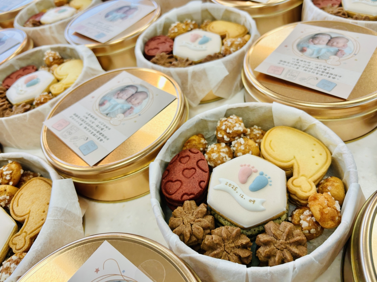 我們以「微笑、禮物、用心」為出發點,將每一份甜品視為一份準備被送出的禮物,透過多樣化的客製設計,從餅乾造型、口味搭配、鐵盒選擇,到包裝細節與整體配色,為每一份禮物打造專屬於送禮者與收禮者之間的故事。